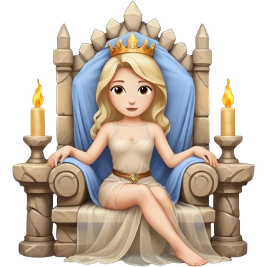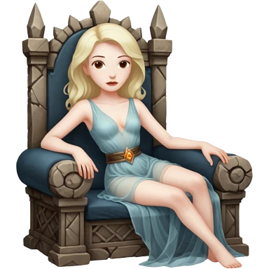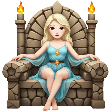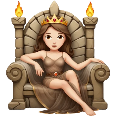 Woman reclining on a stone throne, sheer fabric, torchlight, dangerous emoji