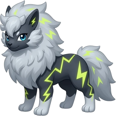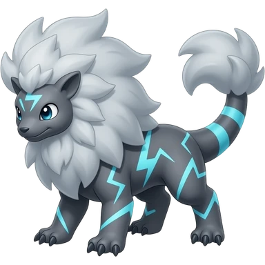 Storm-Grey Cloud-Swirled Heavy-Maned Thunder-Marked Electric Luxray-Manectric hybrid creature (full body) emoji