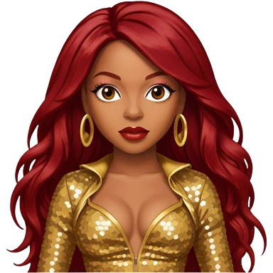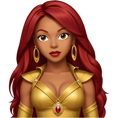 LaTavia Robeson from Destiny's Child with dark red long hair, gold outfit emoji