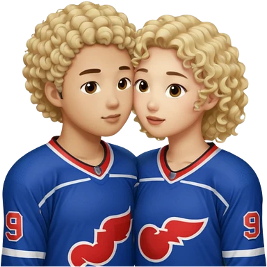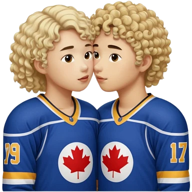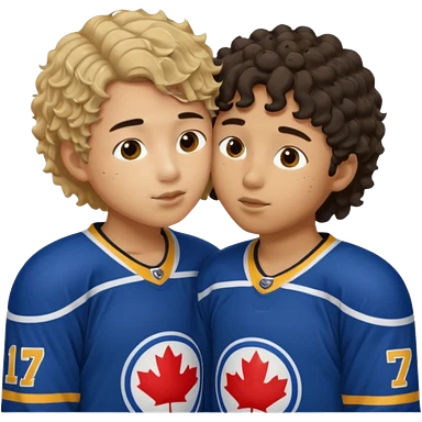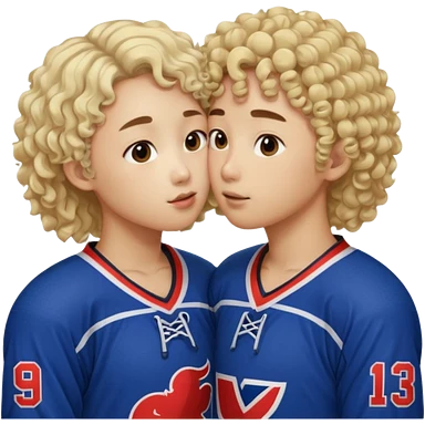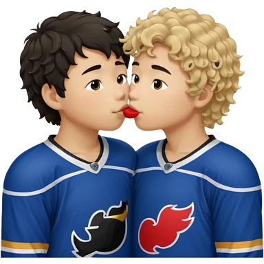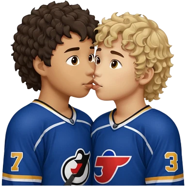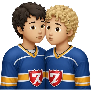 Straight Dark hair boy hockey player kissing curly hair blonde hockey player boy emoji | AI Emoji Generator