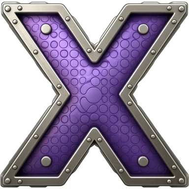 large three-dimensional X sign in purple-metallic color, steampunk style emoji