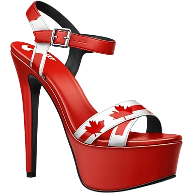 Pair of realistic 10 inch platform high heel sandals, with a canadian flag repeated pattern, still life view emoji