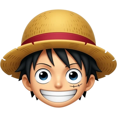 straw hat, black hair, anime style, red t-shirt,boy emoji