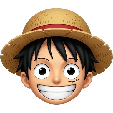 straw hat, black hair, anime style, red t-shirt,boy emoji