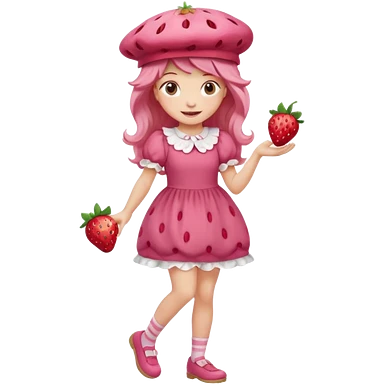 Strawberry shortcake human girl full body and legs with a strawberry hat on her head and dress without a cake emoji
