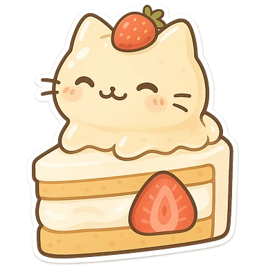 chibi sticker-style rainbow cake slice, cute and exaggerated emoji