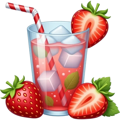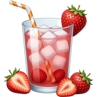 strawberry drink with straw and ice emoji