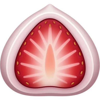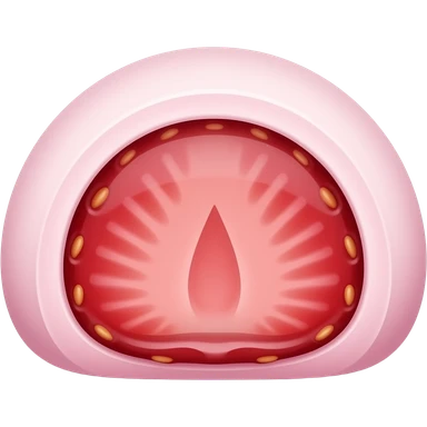 strawberry mochi emoji, cut open showing strawberry filling, kawaii style emoji