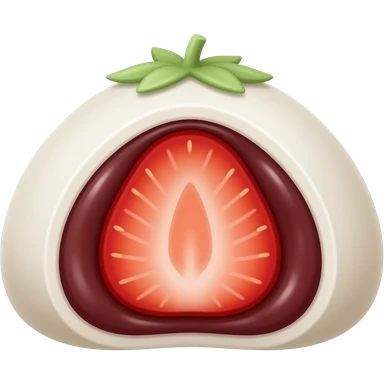 cute strawberry daifuku emoji, white mochi dessert with strawberry and red bean filling, one cut open showing the strawberry inside, kawaii style, simple icon emoji