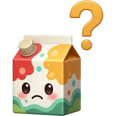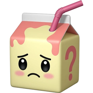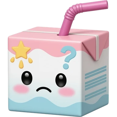 Kawaii juice box with a confused facial expression and a question mark emoji