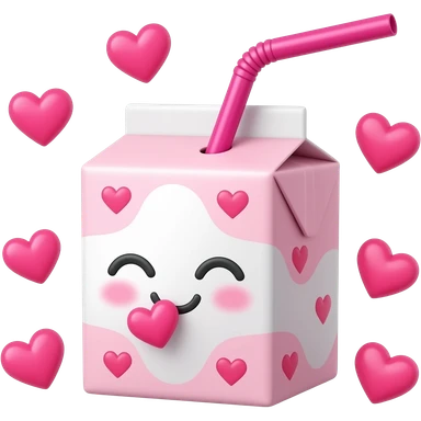Kawaii juice box with a kissing face and hearts all around and a hot pink straw emoji