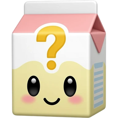 Kawaii juice box with an inquisitive look and a question mark emoji