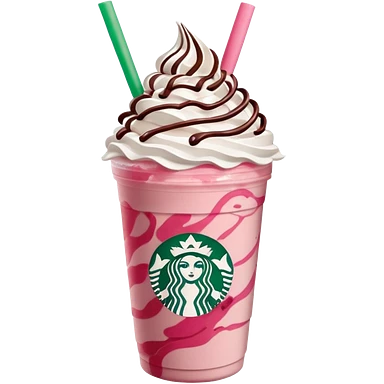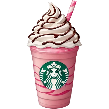 Strawberry Starbucks frappe with strawberry jam at the bottom with whipped cream and chocolate drizzle emoji | AI Emoji Generator