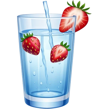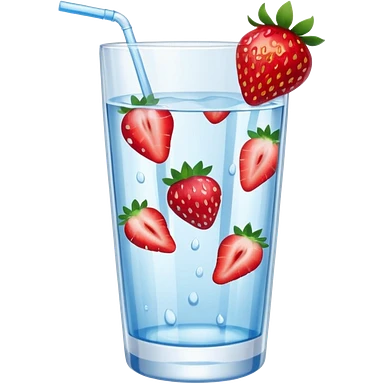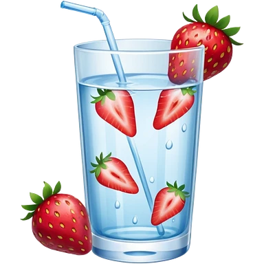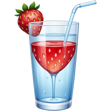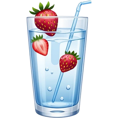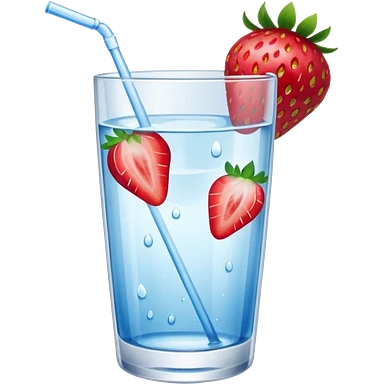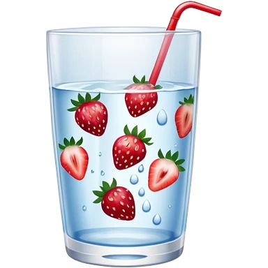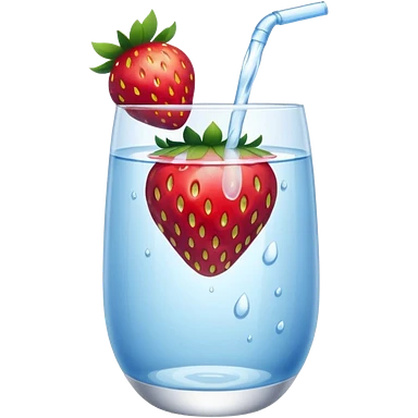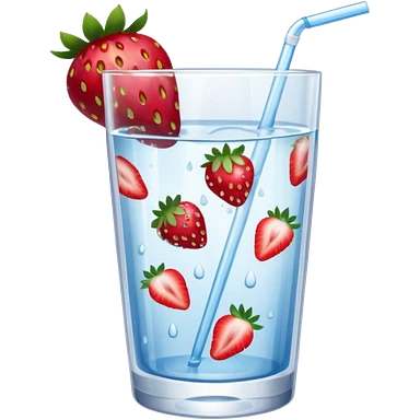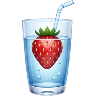 a single strawberry in a clear plastic cup that has water - there is also a straw with a lid emoji