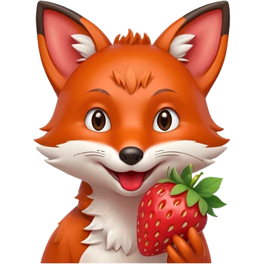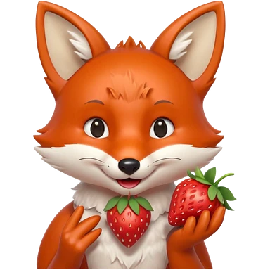 cute fox eating a strawberry portrait, head and shoulders only, holding a fresh strawberry near mouth, happy expression, juicy red berry details, 3D cartoon, mobile game icon style, clean background, no text, no watermark emoji