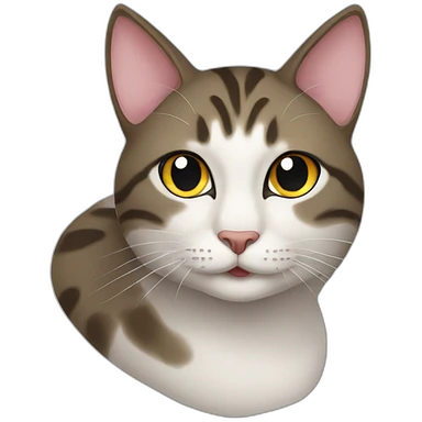 Gray white stray cat, she has pointy ears, white tummy, white right arm, gray left arm, gray back emoji