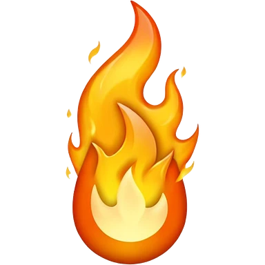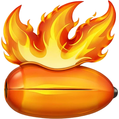 Streak / On Fire Emoji Glossy 3D emoji of a flaming icon or bullet, glowing orange flames, gold reflections. emoji