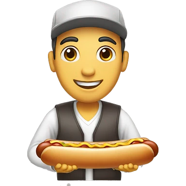 hot dog vendor holding a hot dog in his hand with a cart emoji