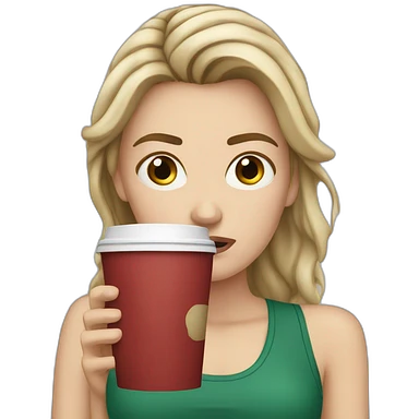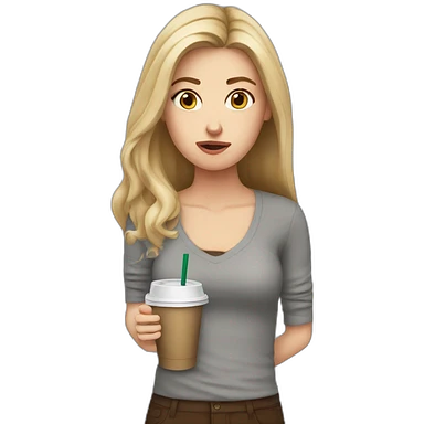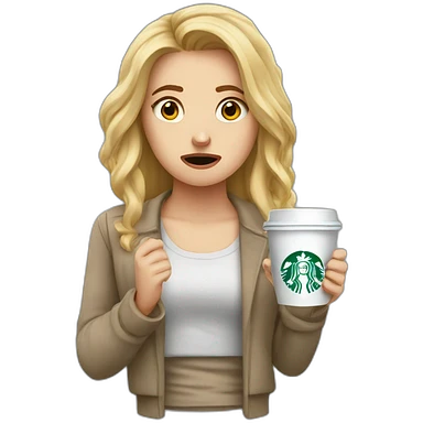 upset angry stressed anxious brunette girl holding starbucks emoji