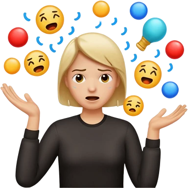 create an emoji of a person juggling lots of work loooking stressed out emoji