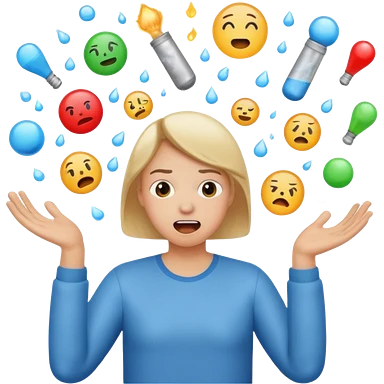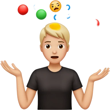 create an emoji of a gender neutral person juggling lots of work looking very stressed out emoji