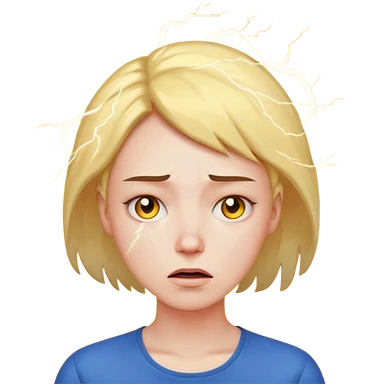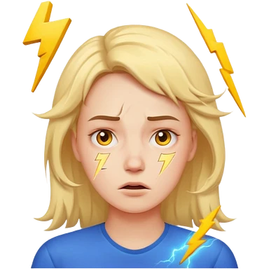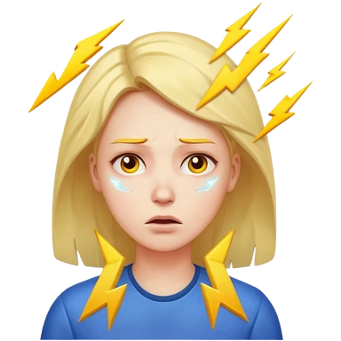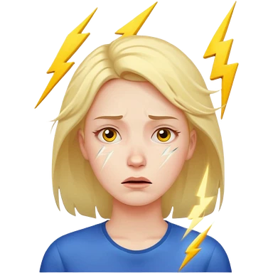 stressed woman with lightning symbol near head, tired face, calm emoji colors, shows stress and cortisol effect on skin emoji