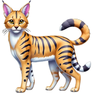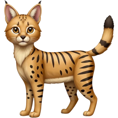 Striped and spotted Lynx-Caracal-Serval-hybrid full body emoji | AI Emoji Generator