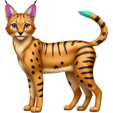 Colorful cartoon bright shiny vibrant iridescent neon tropical exotic anime Striped and spotted Lynx-Caracal-Serval-hybrid full body emoji