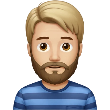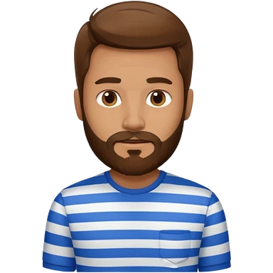 He has long hair and a beard but no moustache and wears a vertically striped t-shirt. emoji