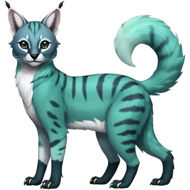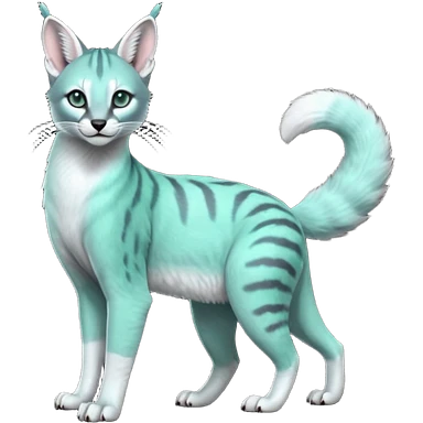 Colorful dark tropical pale light jade-green, mint-blue, whitish pastel white glorious divine exotic cute cool beautiful shiny beautiful fantasy-caracal-civet-genet-sergal-vernid-Gryphon-Cacomistle-Trico-oncilla-animal-Fakémon-hybrid-fursona (full body) emoji