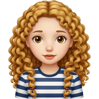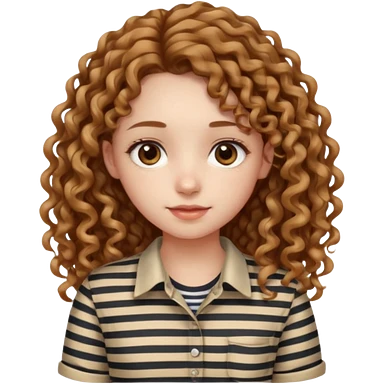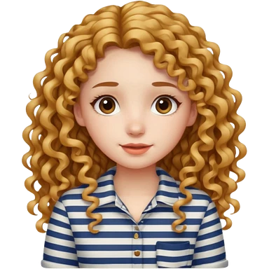 stripped shirt wearing Cute girl long curly hair style. emoji