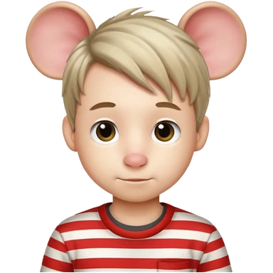 stripped shirt wearing Cute boy mice hair style. emoji | AI Emoji Generator