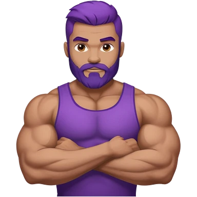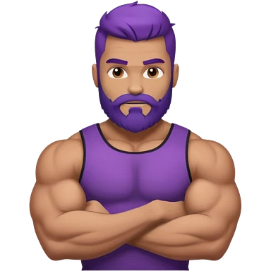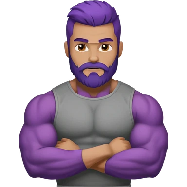 strong muscular man with big bicepts with half dark brown and half purple hair with beard emoji