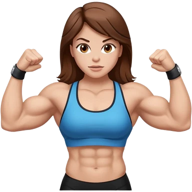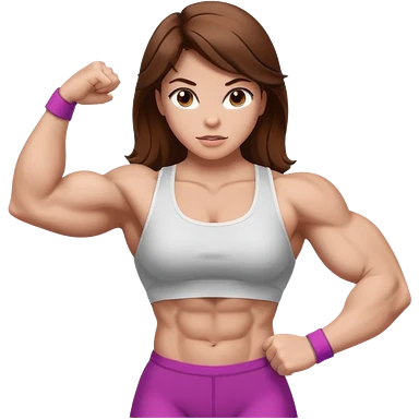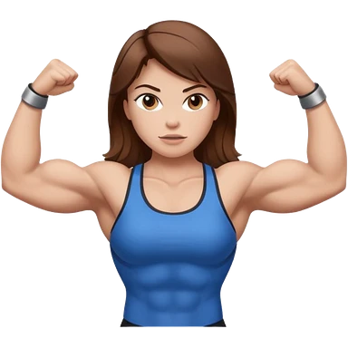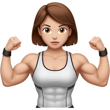 Strong muscle girl brown hair flexing white emoji