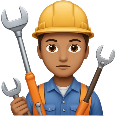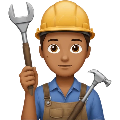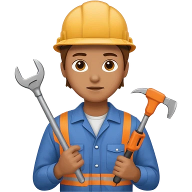 strong, focused figure with glowing eyes, holding a tool and pointing forward, surrounded by energy lines and a bright horizon symbolizing vision and success. emoji | AI Emoji Generator