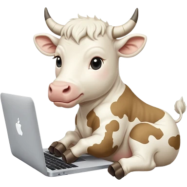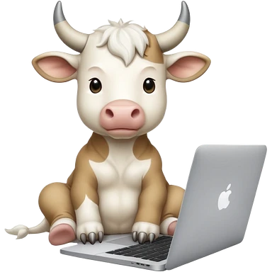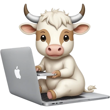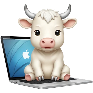 baby white bull sitting in front of a macbook, working emoji
