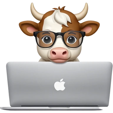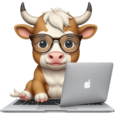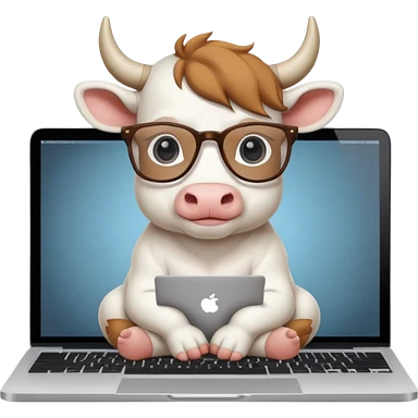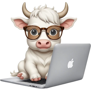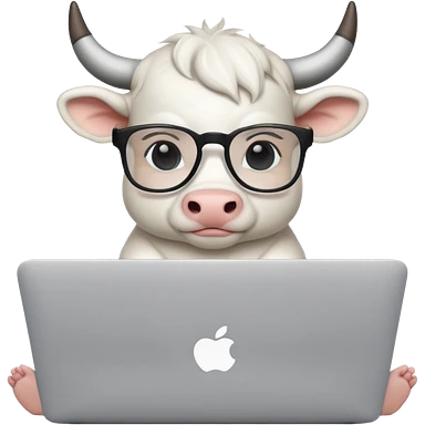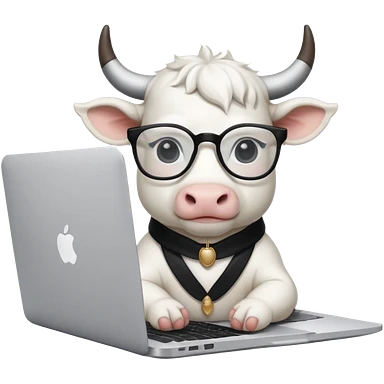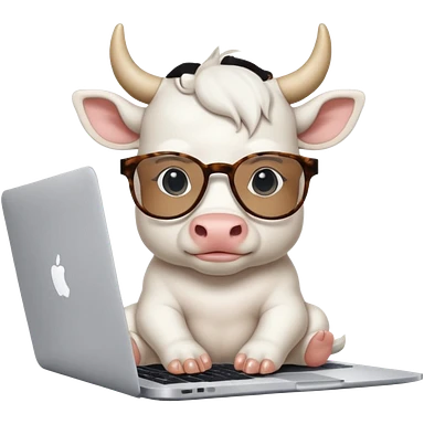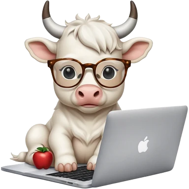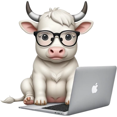 baby white bull in fancy glasses sitting in front of a macbook, working emoji