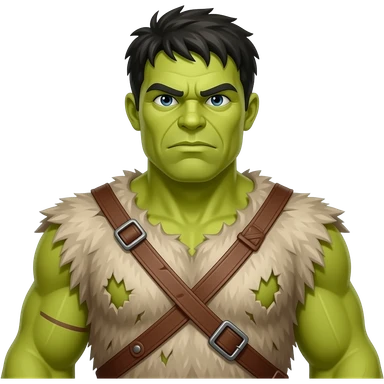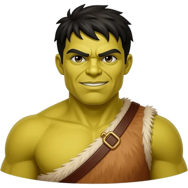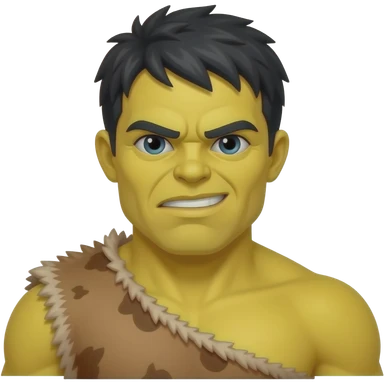 a Hulk wearing ancient animal skin cloth, half body, icon, yellow skin emoji