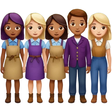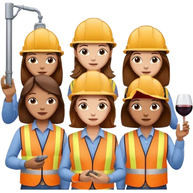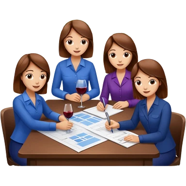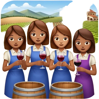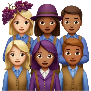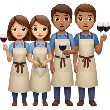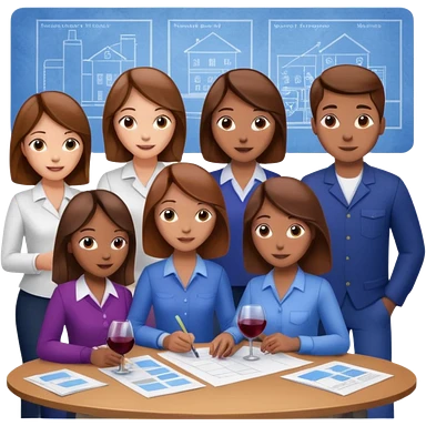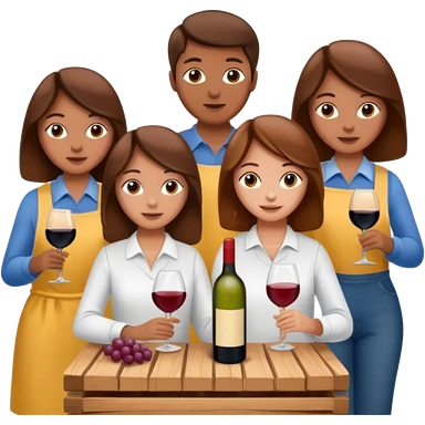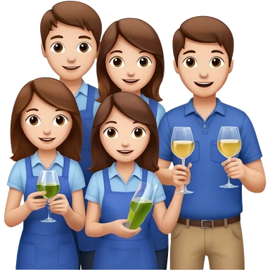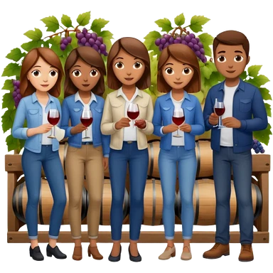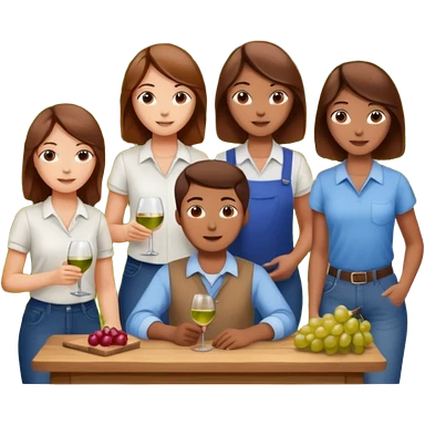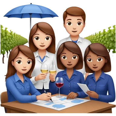 Make a photo of 5 project managers, specifically 3 girls with brown hair and 2 boys, that are making project for improvement of the winery emoji