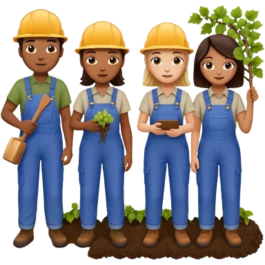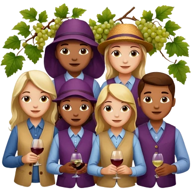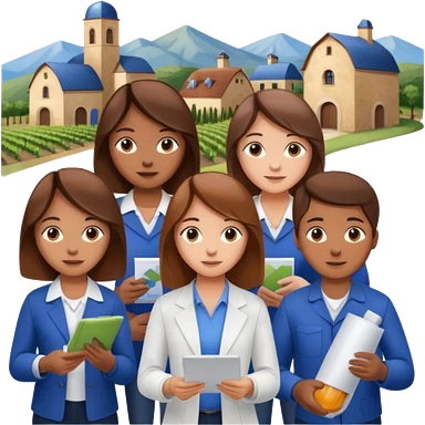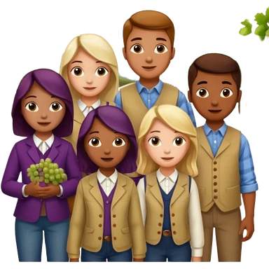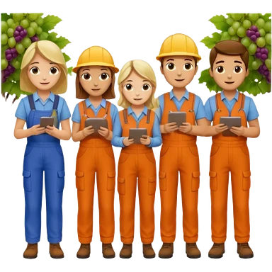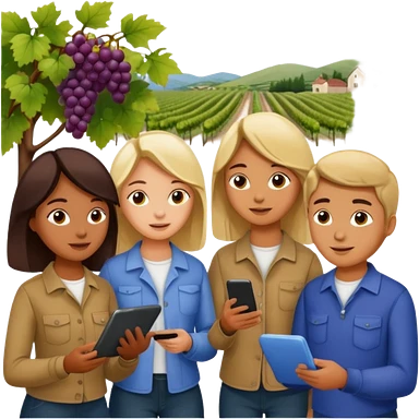 Make a photo of 5 project managers, specificly 3 girls and 2 boys, that are making project for improvment of the vineyard emoji