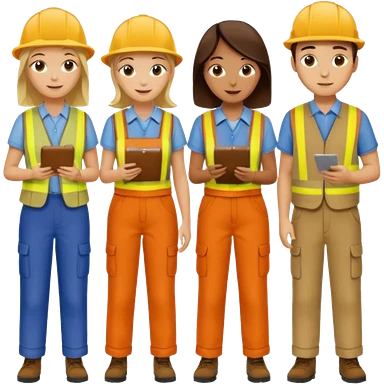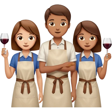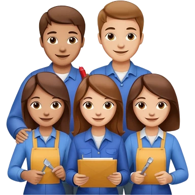 Make a photo of 5 project managers!, specifically 3 girls! with brown hair and 2 boys!, that are making project for improvement of the winery! emoji
