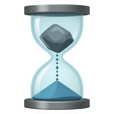Simple and minimalistic sticker of an hourglass with a single large rock in the top half inside, white outline, smooth gradients or solid colours emoji