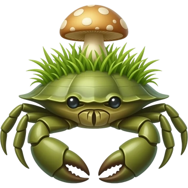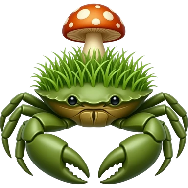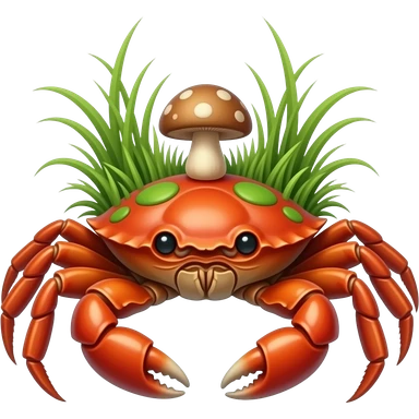A with grass on it in crab with green on it with a mushroom on its back emoji
