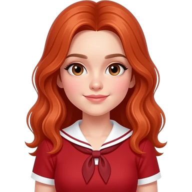 Female, teen, pale, fiery red hair, red preppy top emoji