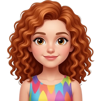 Female, teen, curly red hair, colorful top emoji