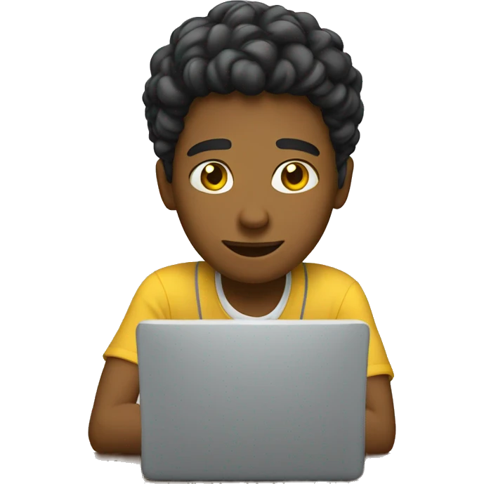 tired student with laptop, window at night behind, chin on desk, apple style emoji emoji