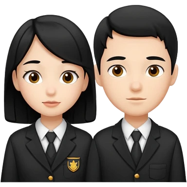 Many school wyhite students and teacher in black blue school costume and green tie emoji