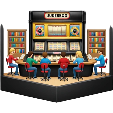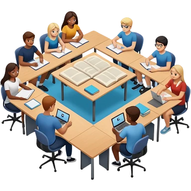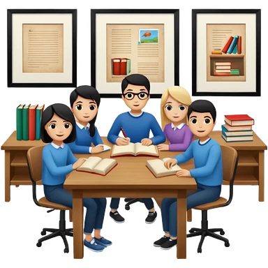 study space with students working on a big table emoji | AI Emoji Generator