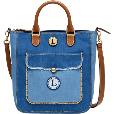 Marc Jacobs Blue 'The Trompe L'Oeil Trinket Canvas Small' Tote, denim, Logo and text embroidered at face, Printed trompe-l'oeil graphics and denim pattern emoji