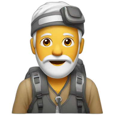 sad traveler man with beige skin tone wearing backpack and hat walking to the right, iOS style emoji